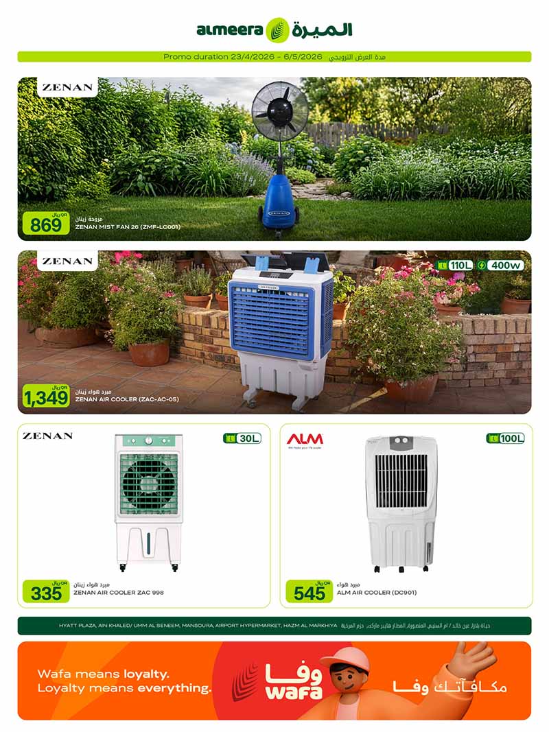 Save on cooling solutions at Al Meera Qatar. Discounts on Zenan mist fans and portable air coolers until May 6, 2026.
