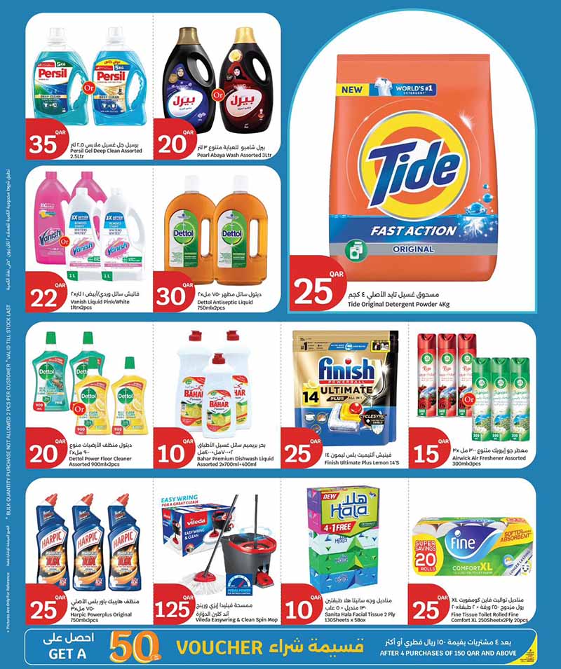 Page 9 of City Hypermarket weekly promotion focused on laundry and home care, featuring Persil gel, Tide detergent, Dettol, Harpic, and cleaning tools.
