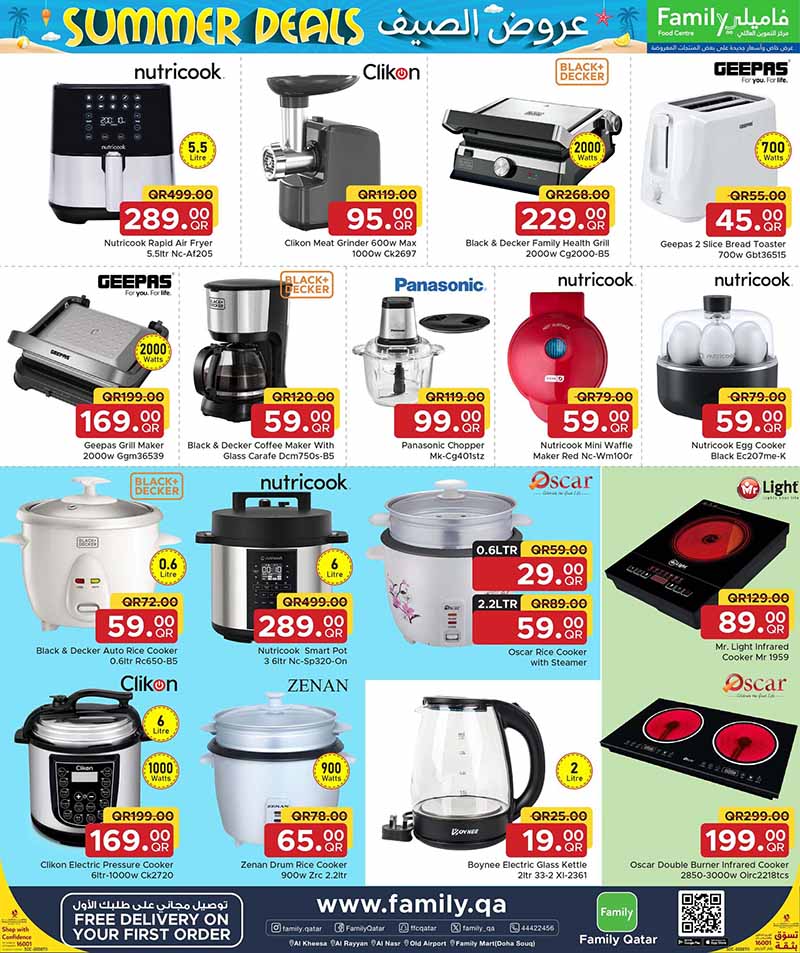 Upgrade your kitchen with air fryers, rice cookers, and electric grills on sale at Family Food Centre Qatar. Offers valid April 2026.