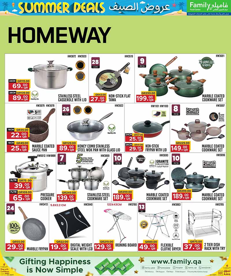 Shop high-quality Homeway non-stick cookware, frying pans, and iron boards on sale at Family Food Centre, Qatar. View the summer collection.
