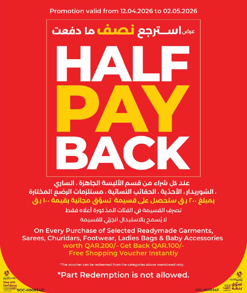 Lulu Hypermarket Half Pay Back Offer Qatar April 2026 - Get QAR 100 back on QAR 200 purchase
