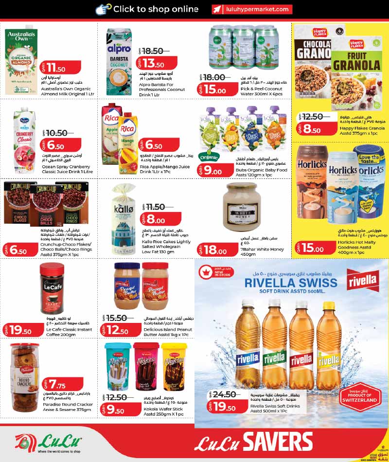 Lulu Savers Grocery Offers Qatar - Almond milk, juices, granola, Horlicks, peanut butter, Rivella soft drinks