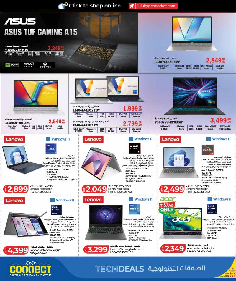ASUS TUF Gaming Laptop, Lenovo IdeaPad, Yoga, Acer Aspire and Predator Gaming Laptops at Lulu Hypermarket Qatar April 2026
