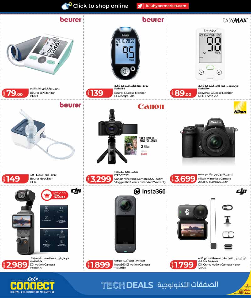 Shop professional mirrorless cameras from Canon and Nikon, plus DJI action cameras. Also includes Beurer and EasyMax blood pressure and glucose monitors.