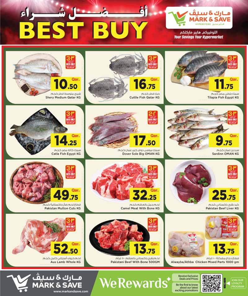 Save big on fresh fish and meat cuts at Mark & Save Hyperstore. Includes beef, mutton, and fresh catch. Valid offer from April 23 to 26, 2026.