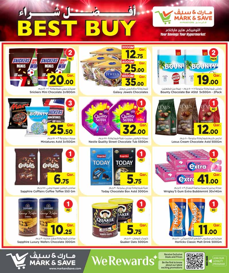 Best buy deals on premium chocolates and snacks including Galaxy, Snickers, and Quality Street. Shop the April 2026 promotion at Mark & Save.