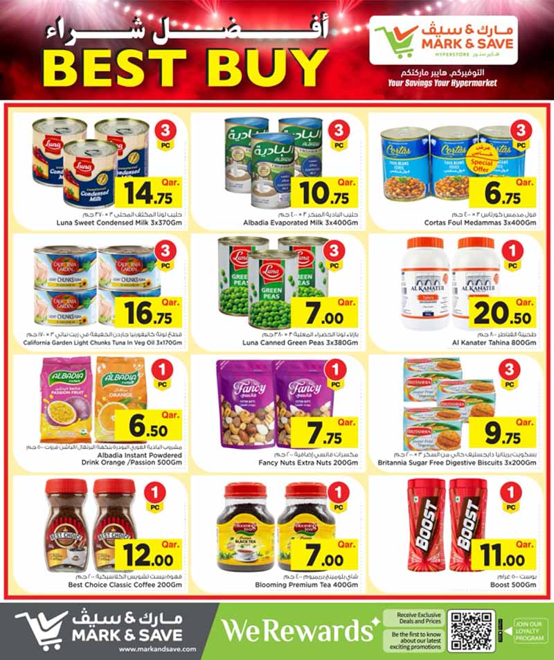 Best prices on canned milk, tuna, peas, and digestive biscuits. Complete your grocery shopping at Mark & Save Hyperstore before April 26.
