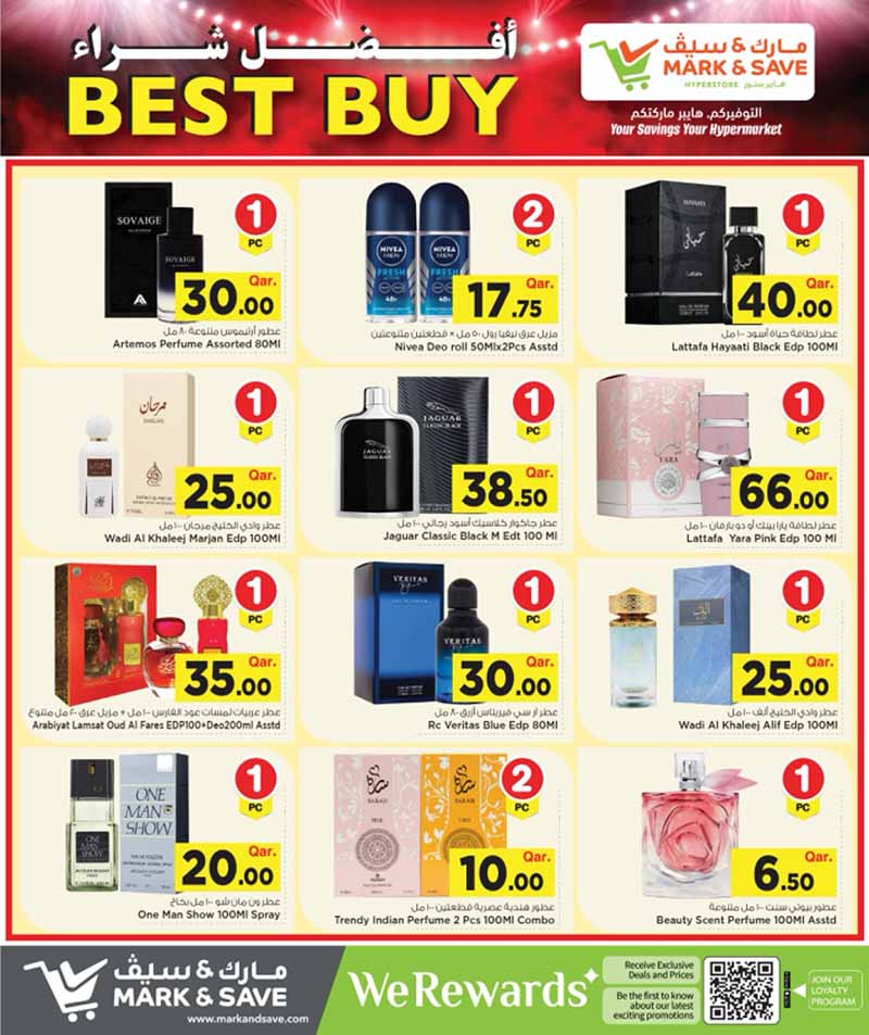 ← Back to Mark & Save Hyperstore BEST BUY OFFERS 23-04 to 03-05 mark-and-save-hyperstore-best-buy-23-04-2026-913 Full resolution (800 × 953) ← Previous Next → Shop high-quality fragrances and perfumes at discounted prices. Explore the Best Buy flyer at Mark & Save Hyperstore Qatar.