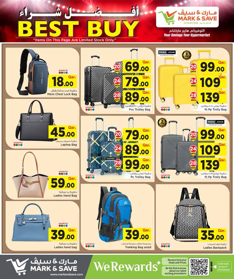 Planning a trip? Shop for durable trolley bags, suitcases, and backpacks at Mark & Save Hyperstore Qatar. Best Buy prices applied.