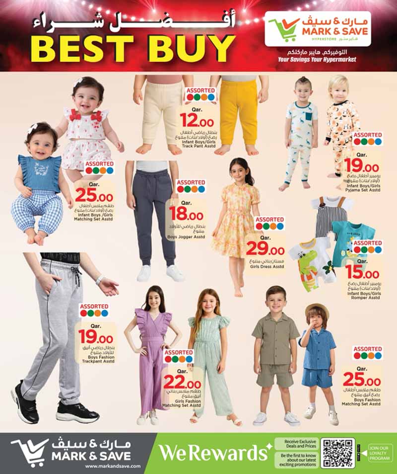 Shop the latest Best Buy deals on kids’ clothing at Mark & Save Hyperstore Qatar. Affordable prices on baby and kids’ fashion sets for April 2026.