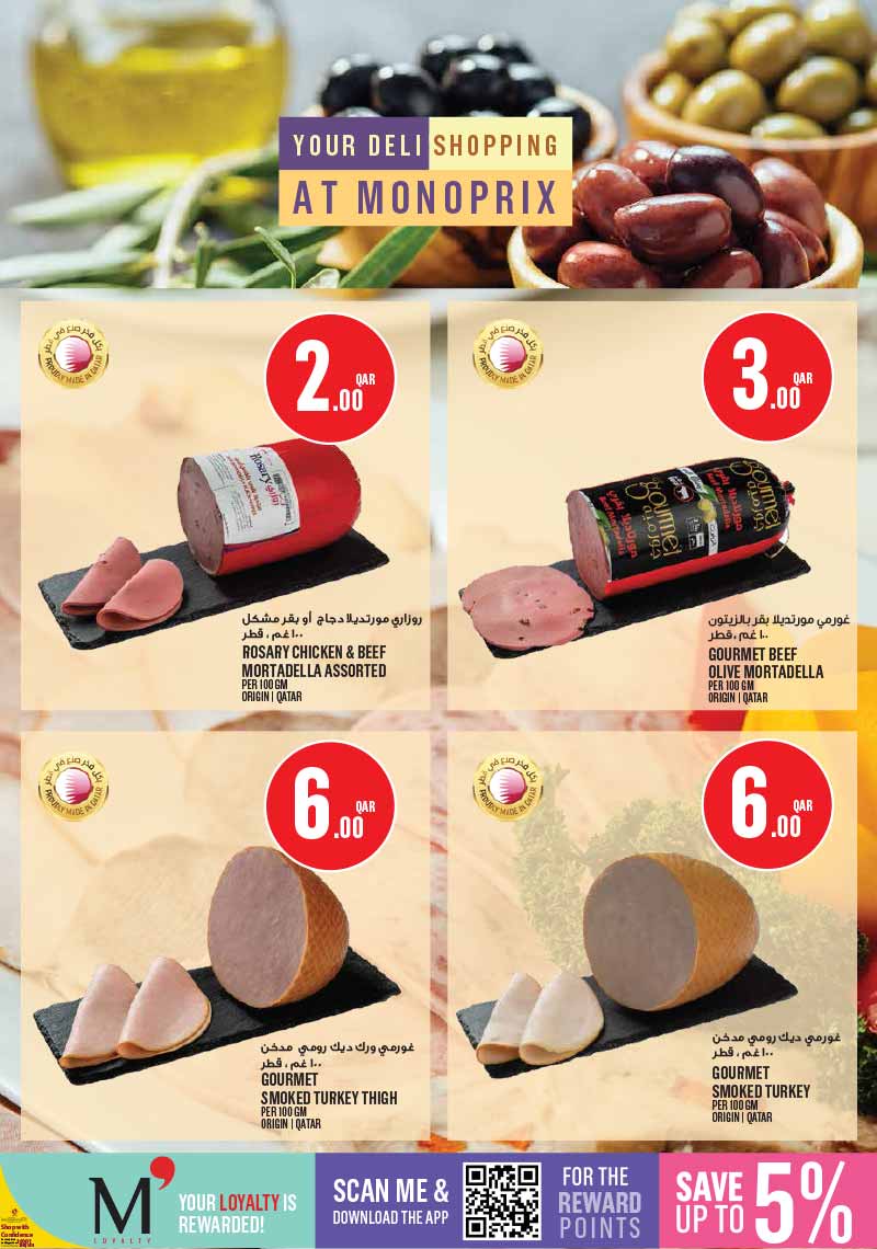 Upgrade your deli shopping at Monoprix Qatar. Shop discounted prices on Rosary and Gourmet mortadella, and premium smoked turkey this weekend.
