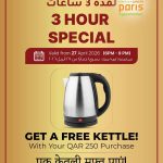 🎁 SPECIAL OFFER: Spend QAR 250 or more and walk away with a FREE KETTLE! Don’t miss outβ€”once the clock strikes 9, these deals are gone! πŸƒπŸ’¨