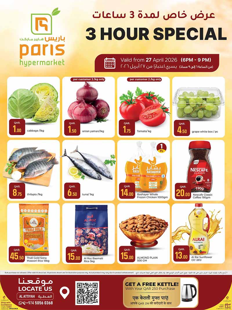 ← Back to Paris Hypermarket Al-Attiyah 3 HOUR SPECIAL 27-04 from 6pm to 9pm paris-hypermarket-al-attiyah-3-hours-27-04-2026-1 Full resolution (800 × 1067) Next →