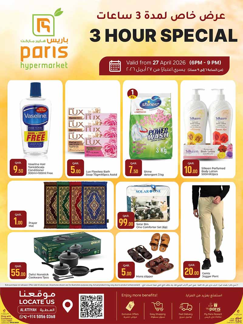 ← Back to Paris Hypermarket Al-Attiyah 3 HOUR SPECIAL 27-04 from 6pm to 9pm paris-hypermarket-al-attiyah-3-hours-27-04-2026-2 Full resolution (800 × 1067) ← Previous Next →