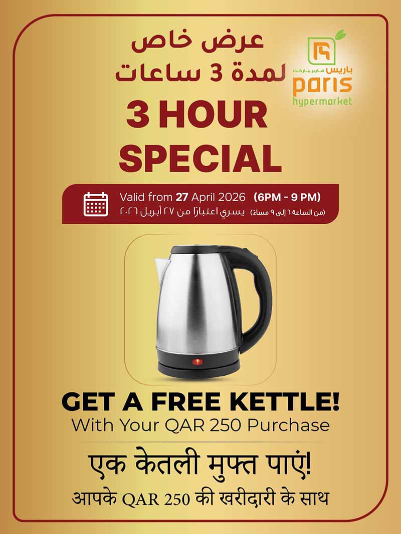 • Paris Hypermarket Al-Attiyah 3 HOUR SPECIAL 27-04 from 6pm to 9pm April 27, 2026