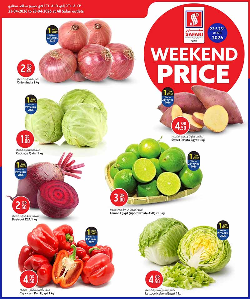 Get fresh vegetables for less this weekend. Discover great offers on onions, cabbage, lettuce, and more at Safari Hypermarket. Valid April 23-25, 2026.