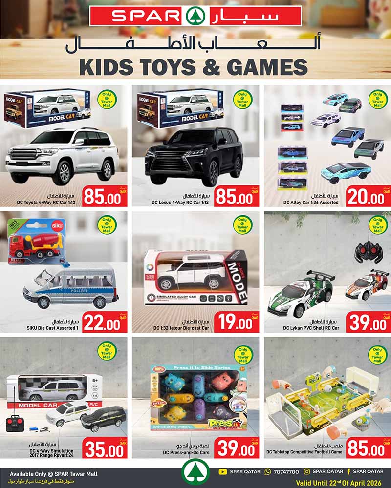 ← Back to SPAR Tawar Mall Flyer: Electronics, Kitchen Essentials & Toys Deals in Qatar valid until 22-04 spar-hypermarket-electronics-18-04-2026-4 Full resolution (800 × 1000) ← Previous Next → Exciting price drops on children’s toys, including 4-way remote control Toyota and Lexus models and other die-cast vehicles.